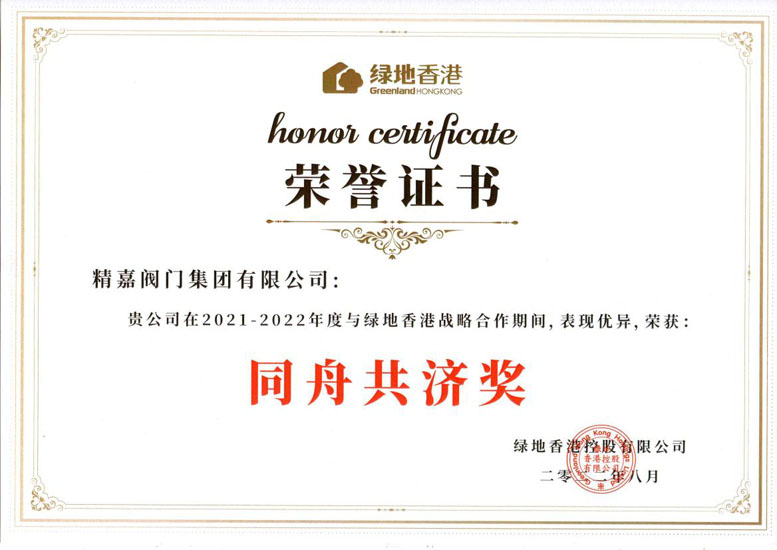 蝶阀金牌荣誉证书